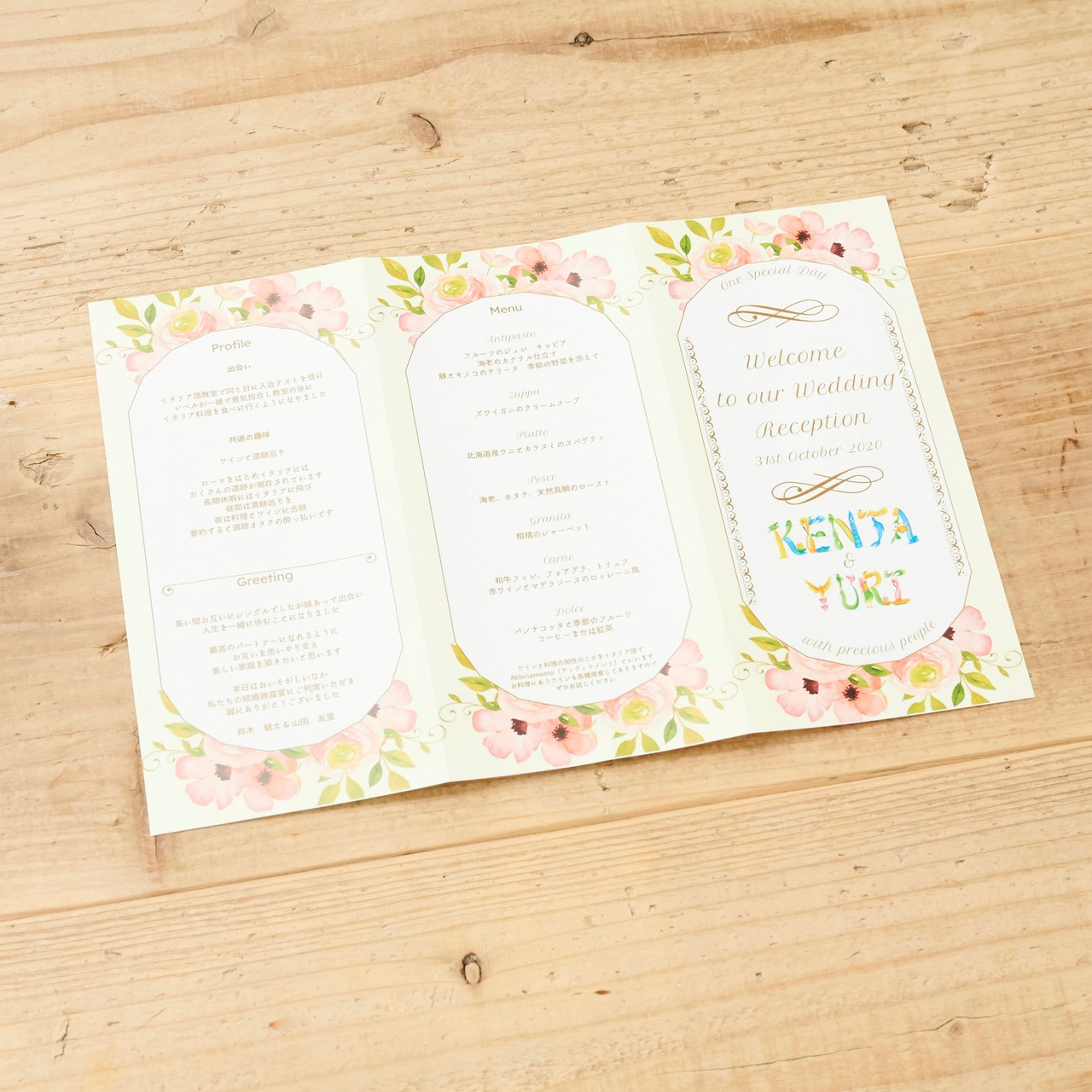 ご両家のお名前や会場情報も美しくデザインし、特別な一日を演出します。