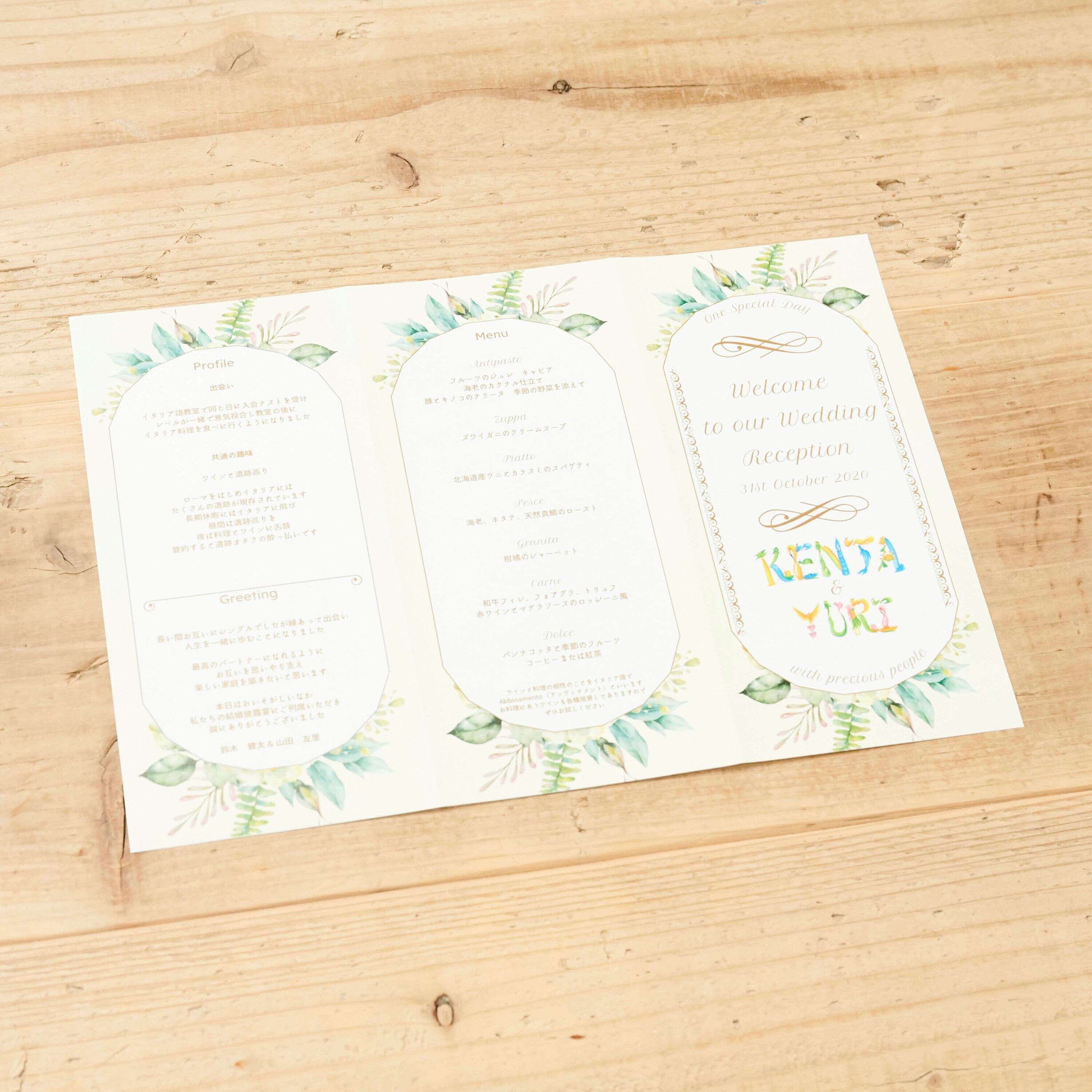 ご両家のお名前や会場情報も美しくデザインし、特別な一日を演出します。