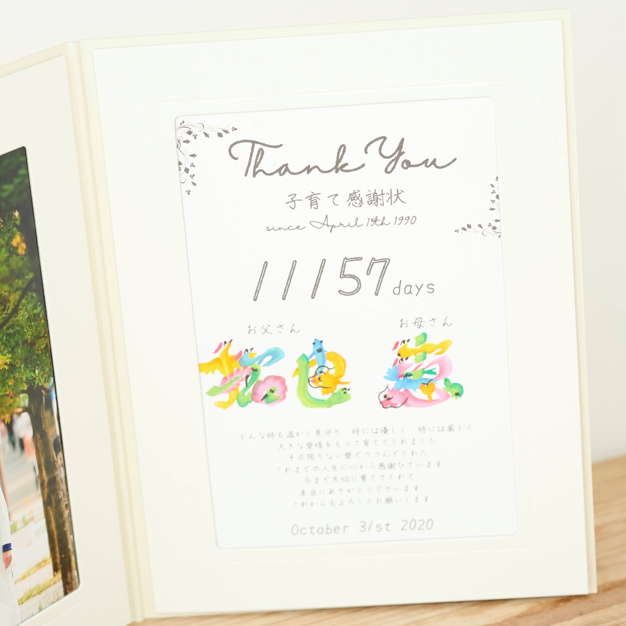 世界に一つの「子育て感謝状」です。