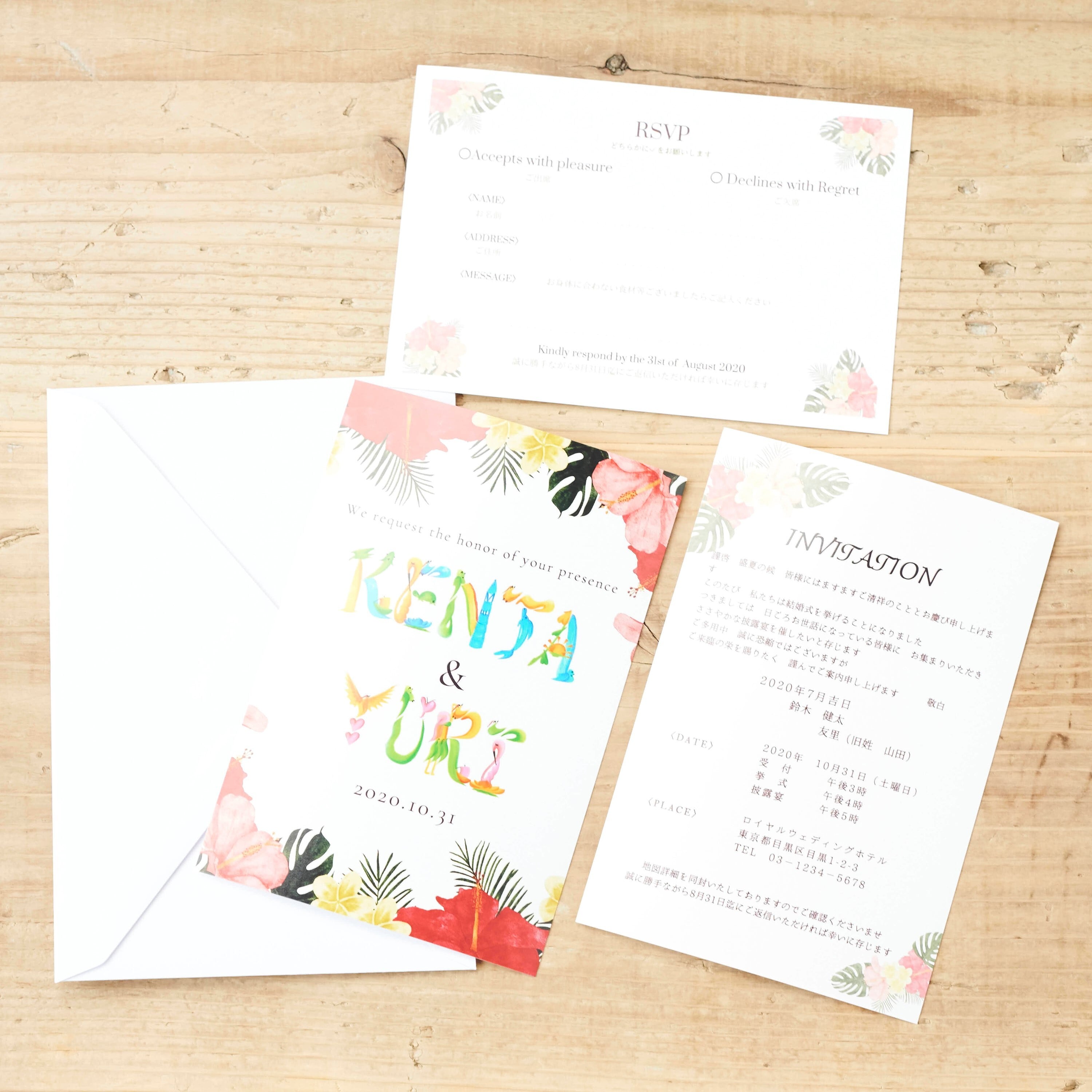 【結婚式セット】花文字デザイン(招待状+席次表+席札/データ納品)✳︎ハワイ✳︎