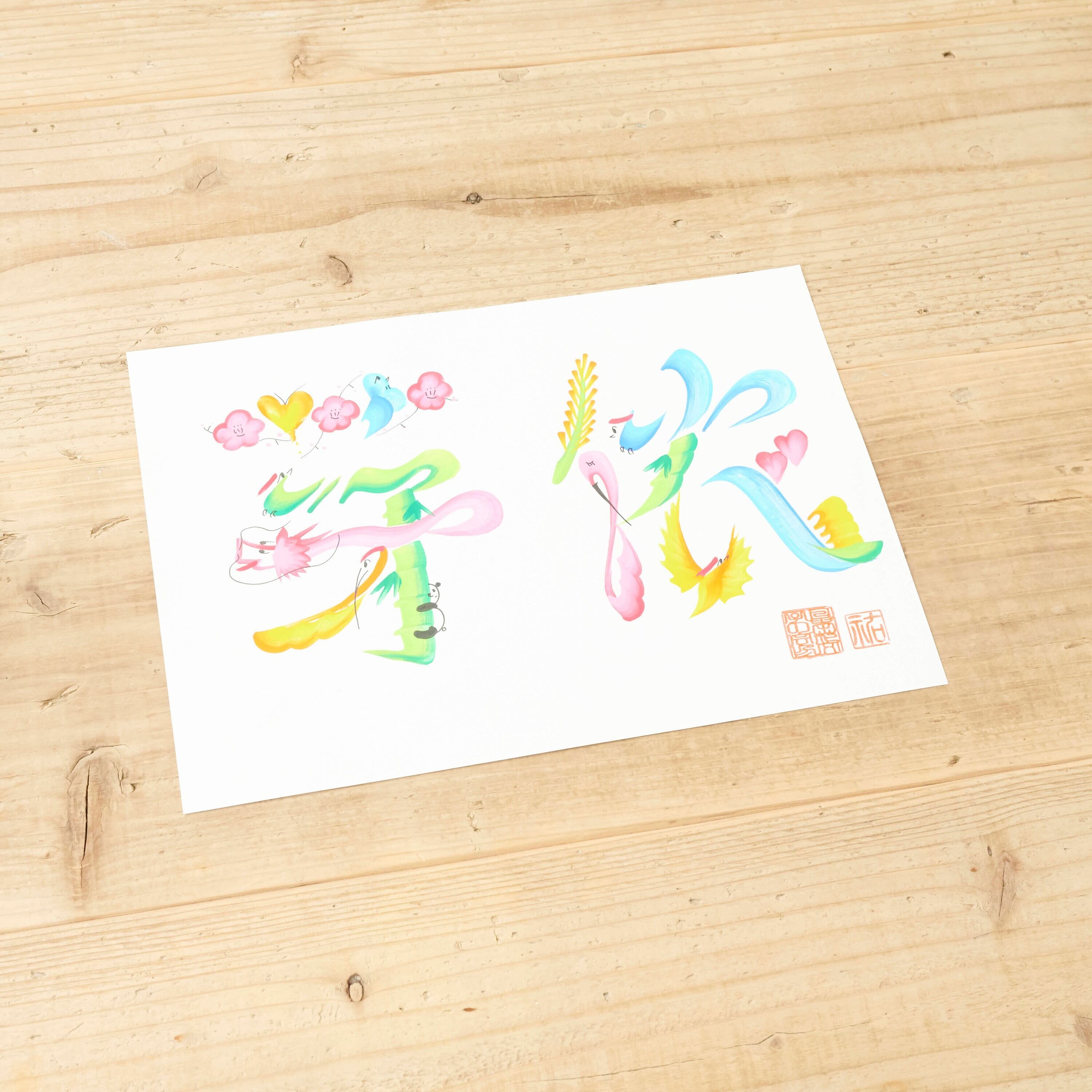 縁起の良い絵柄を用いて、文字を形作る花文字を用いたオーダーメイドです。